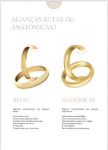 Flexibilidade na quantidade de ouro e tipos de diamantes, para desenvolver a aliança dos sonhos dentro do orçamento disponível.