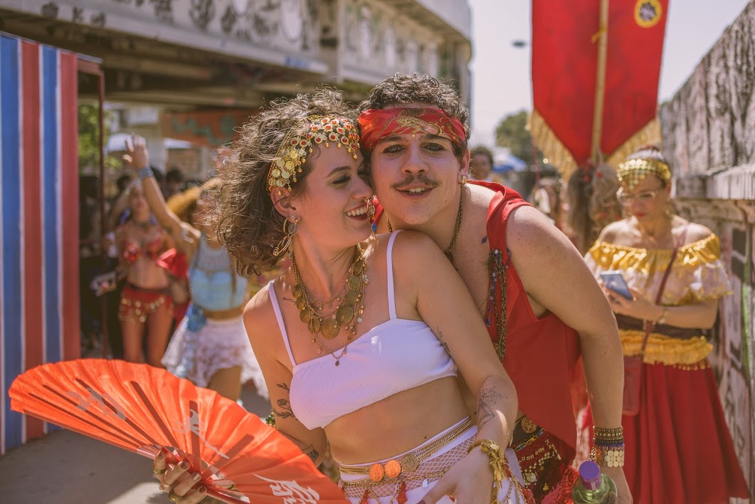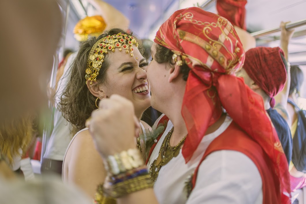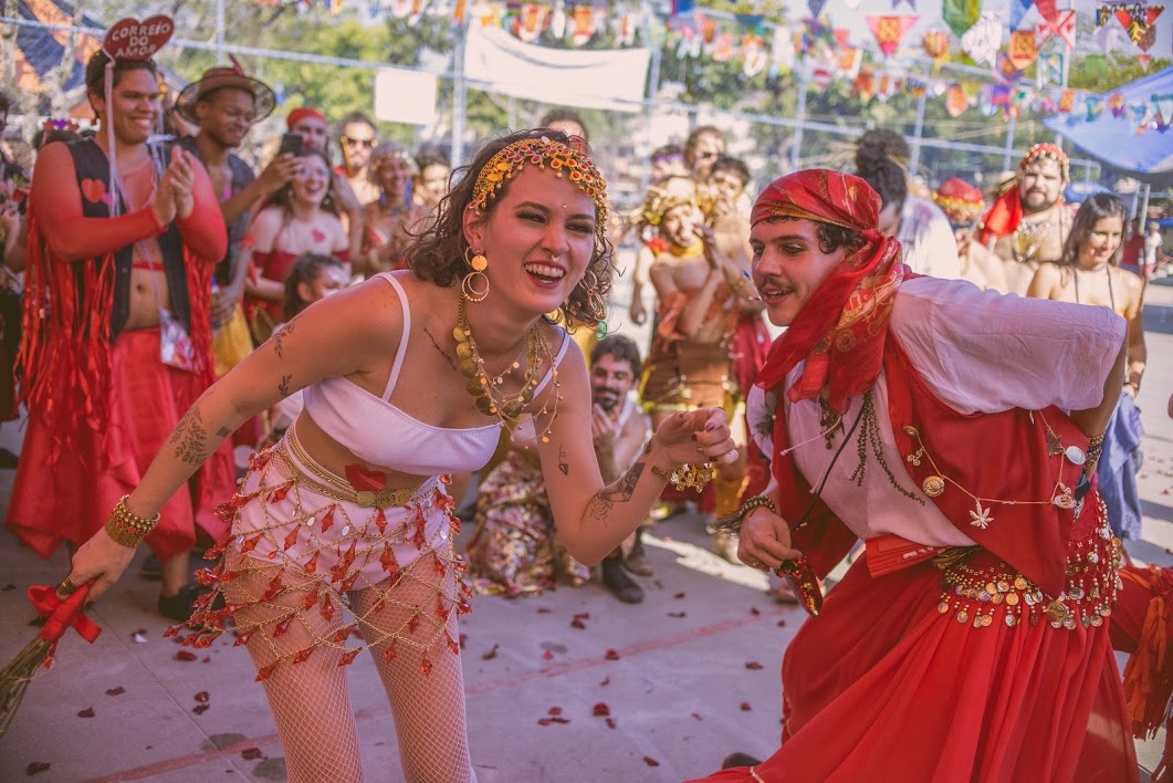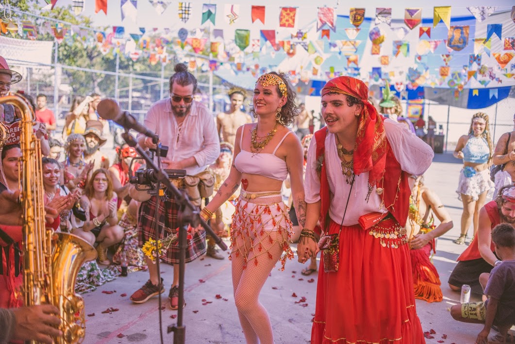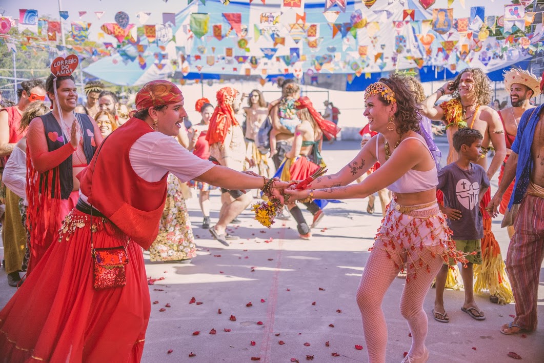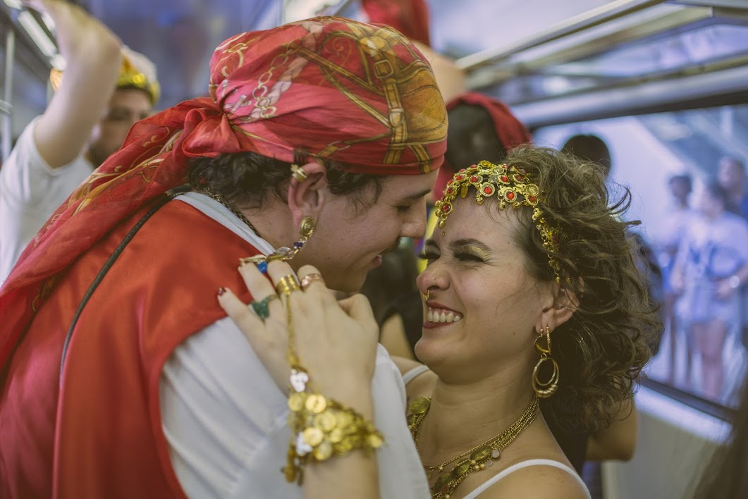 A gestora de projetos baiana Larissa Novais, 26 anos, e o designer de produto Christian Dagnoni, 25, sempre foram loucos pelo Carnaval. Eles se conheceram no meio do cortejo do bloco Charanga Talismã, no Rio de Janeiro. Alguns meses depois, nesse mesmo bloco, o casal assumiu que estava apaixonado. Mal sabiam que, quase dois anos depois, se casariam – fantasiados, cheios de purpurina e ao lado dos amigos – no mesmo cortejo.