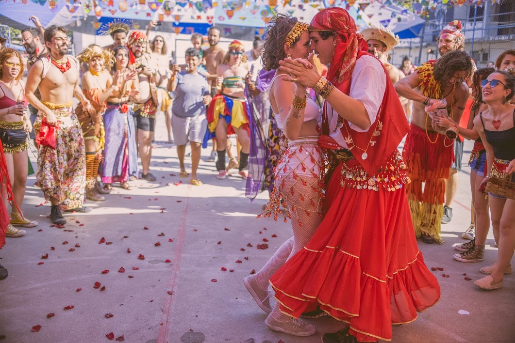 “A gente resolveu casar no bloco porque tem tudo a ver com a gente. Foi onde a gente se conheceu, é para onde a gente vai bastante juntos e é onde muitos dos nossos amigos estão. Quisemos fugir dessa obrigação social do casamento tradicional – com a noiva vestida de branco, etc – e fazer muito mais como uma celebração”, reafirma.