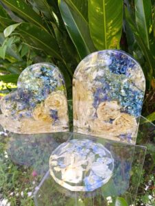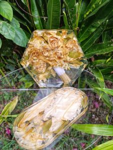 Através de um processo cuidadoso de desidratação e encapsulamento em resina, as flores são preservadas com riqueza de detalhes, mantendo suas formas e, em muitos casos, até nuances das cores originais. O resultado é uma verdadeira obra de arte — única, personalizada e carregada de emoção.