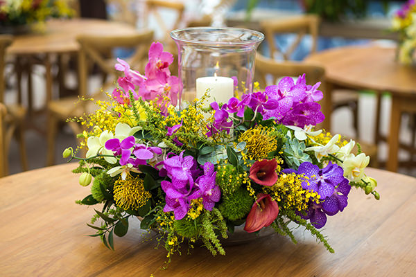 A decoração leve, divertida, colorida e com um pegada tropical, de Vic Meirelles e Nubia Sonja Eventos, combinou perfeitamente com o estilo do casal – que pediu algo despojado. O bolo foi da The King Cake. “Queria algo bem jovem e leve, nada clássico, mas também não queria nada muito rústico”, resumiu.