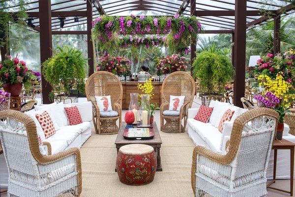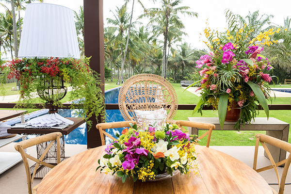 “As cores predominantes da decoração foram rosa, amarelo e verde. Nos móveis, muita madeira clara e palha“, explicou Marcela.