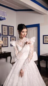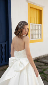 Inspirada na esperança como sentimento transformador, a Speranza traz vestidos rodados ideais para grandes cerimônias em catedrais, confeccionados com tecidos diferenciados como gazar, acqua, piquê e telas com brilho desenhado.