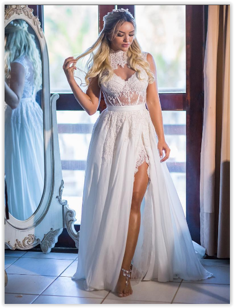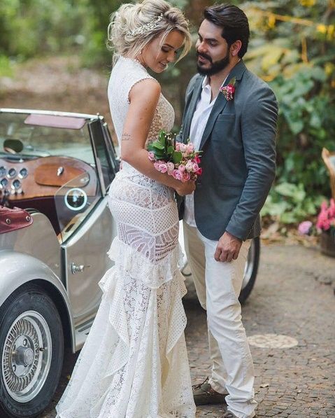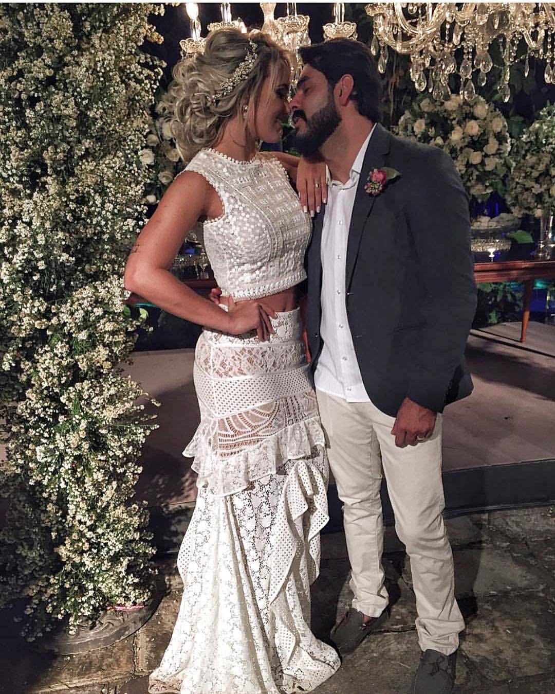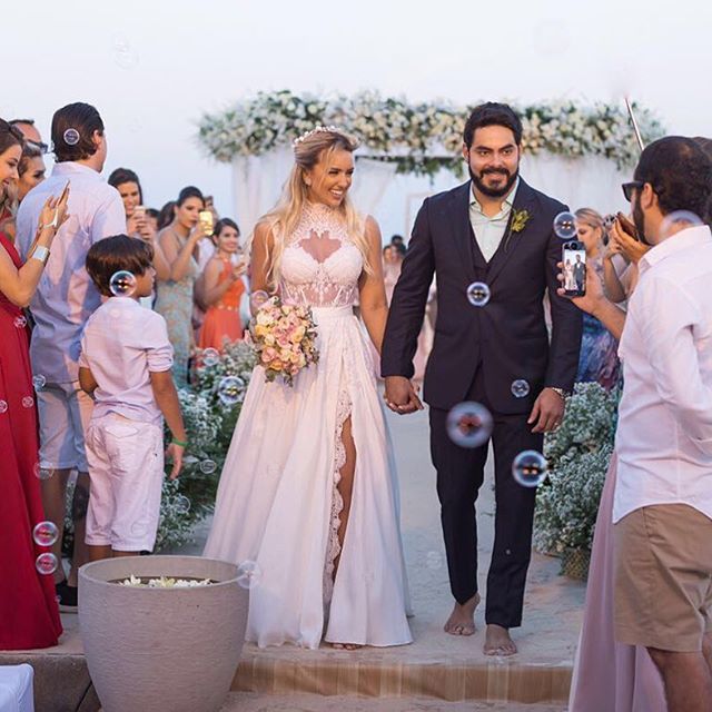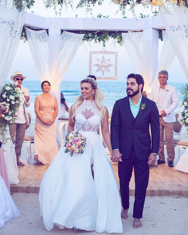 Os dois se separaram em 2018, mas fizeram a primeira celebração da união no dia 26 de setembro 2016, após quatro anos de relacionamento, com direito a uma festa memorável para 400 convidados na praia de Porto das Dunas, em Aquiraz, no Ceará. Com pé na areia e decoração bem romântica – estilo que a blogueira adota até hoje – o ‘grande dia’ aconteceu no Pier 85 Praia & Lounge. O casal disse ‘sim’ em uma cerimônia conduzida pelo pastor José Pedro.