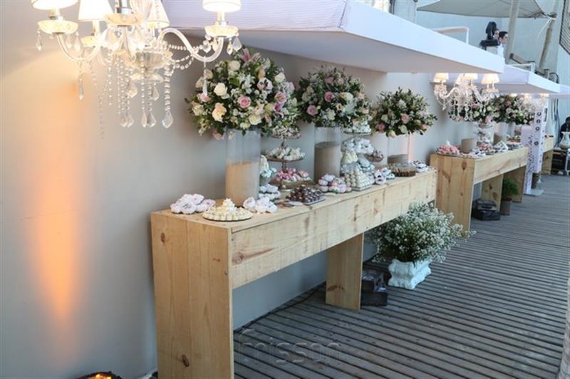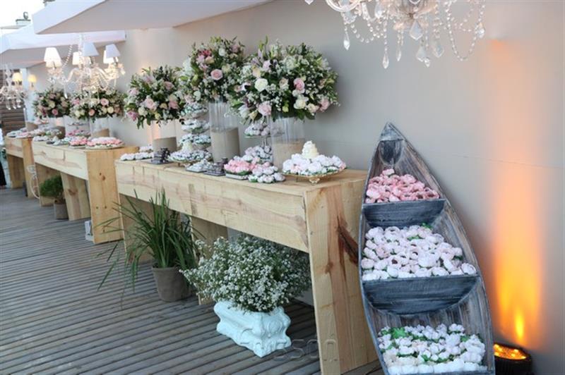 Uma mesa de mais de 5 metros de doces variados e o buffet serviu comidas típicas com um toque gourmet.