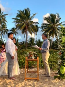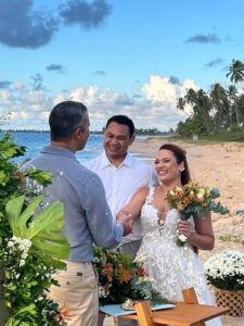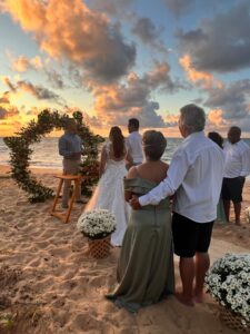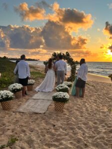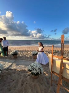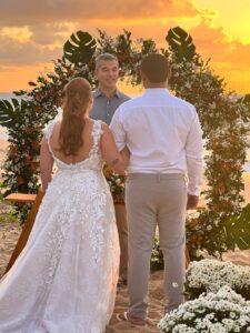 Ricardo Luz: Ah, foi algo muito natural e espontâneo. Sempre gostei de eventos, de conectar pessoas e de criar momentos exclusivos. Trabalhei 17 anos na hotelaria, mas havia uma vontade de algo mais próximo, mais emocional. Quando recebi o convite da Angel, em novembro de 2017, ela era uma noiva com quem eu já auxiliava na organização de um mini wedding no Hotel Via dos Corais, em Praia do Forte, onde eu gerenciava. Quando todos os fornecedores estavam definidos, ela lembrou que precisava de alguém para conduzir a cerimônia, além de precisar falar inglês. Após buscar esse profissional sem sucesso, foi inevitável dizer, “sim” ao convite dela para conduzir a cerimônia bilíngue, em português e inglês, com o noivo Marcelo.