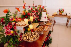 Desde a cerimônia até a recepção, cada espaço é planejado com harmonia, elegância e identidade. Altar, corredor, mesas, lounges e todos os pontos estratégicos recebem atenção especial para criar uma experiência visual encantadora.