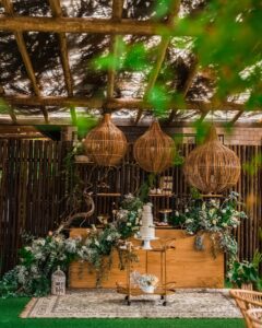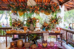 A essência do trabalho de Talita está na valorização do natural e do orgânico. Folhagens abundantes, flores frescas e uma paleta que passeia entre tons terrosos, verdes e pontos de cor mais vibrantes criam cenários vivos e acolhedores.