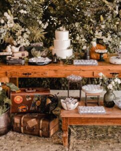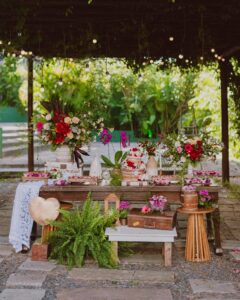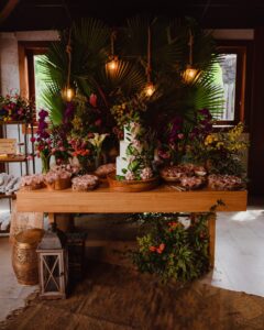 Embora a mesa de doces seja um dos grandes destaques, o trabalho de Talita vai muito além. Cada espaço do casamento é pensado como parte de um todo: